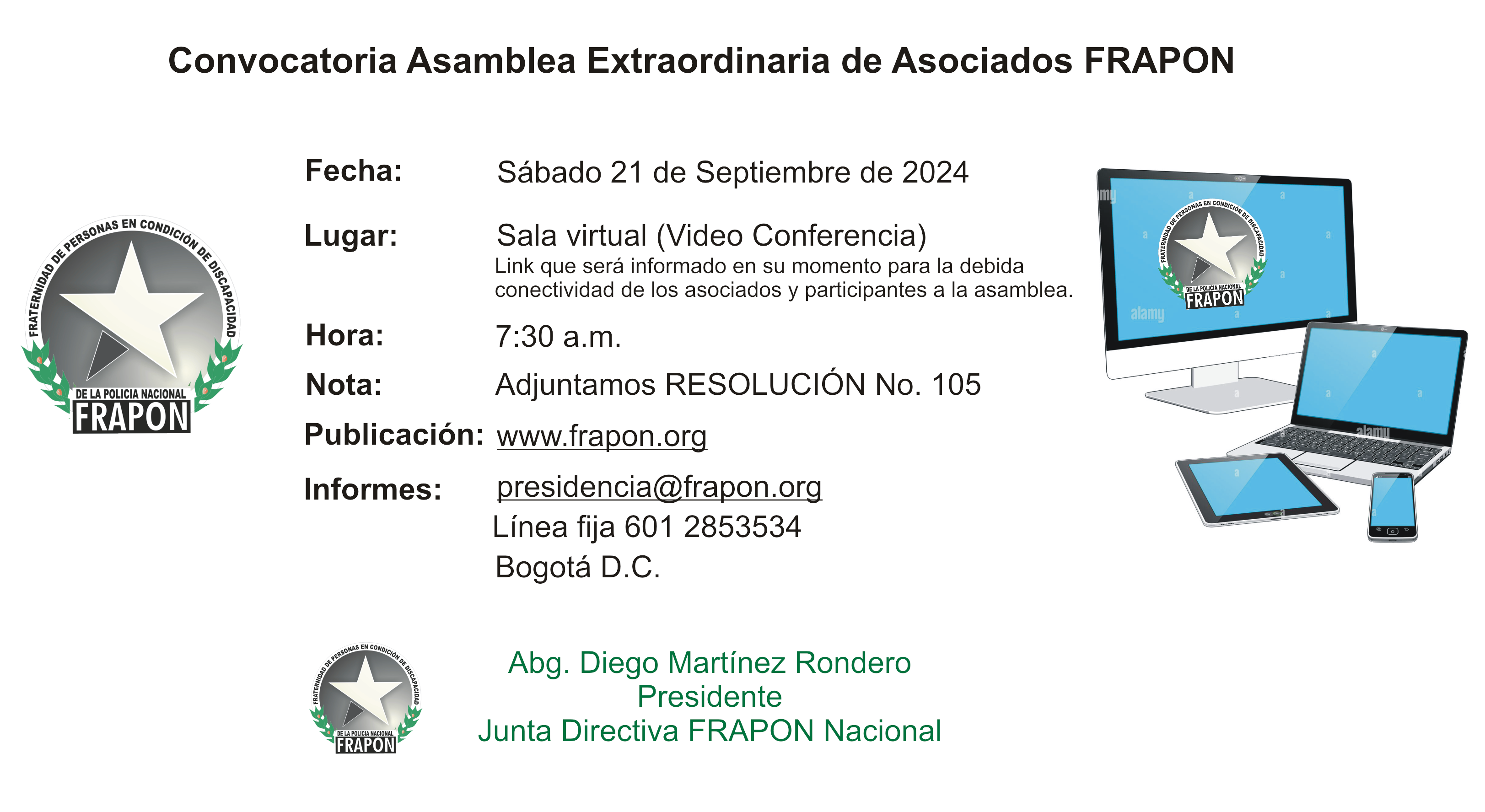 En FRAPON tenemos como misión especial lograr la rehabilitación plena e integral del Policía en condición de discapacidad; somos una Fraternidad emprendedora, influyente y líder; que aporta bienestar económico y social a nuestros Asociados.