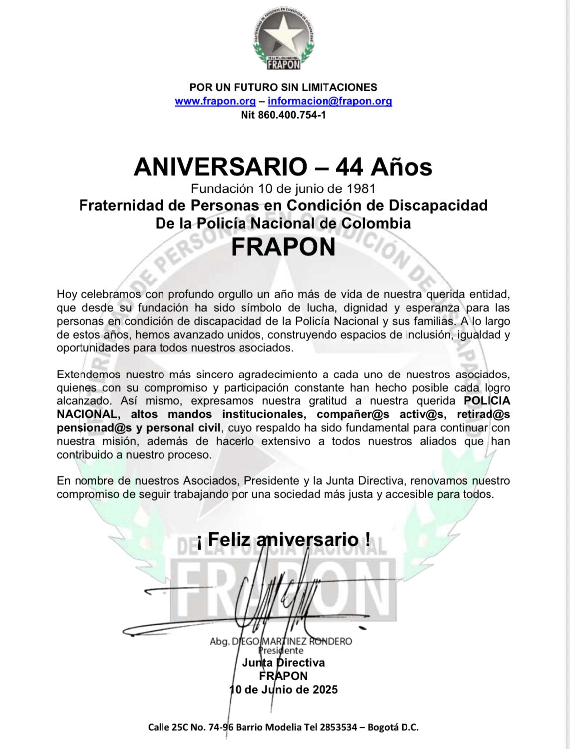 En FRAPON tenemos como misión especial lograr la rehabilitación plena e integral del Policía en condición de discapacidad; somos una Fraternidad emprendedora, influyente y líder; que aporta bienestar económico y social a nuestros Asociados.